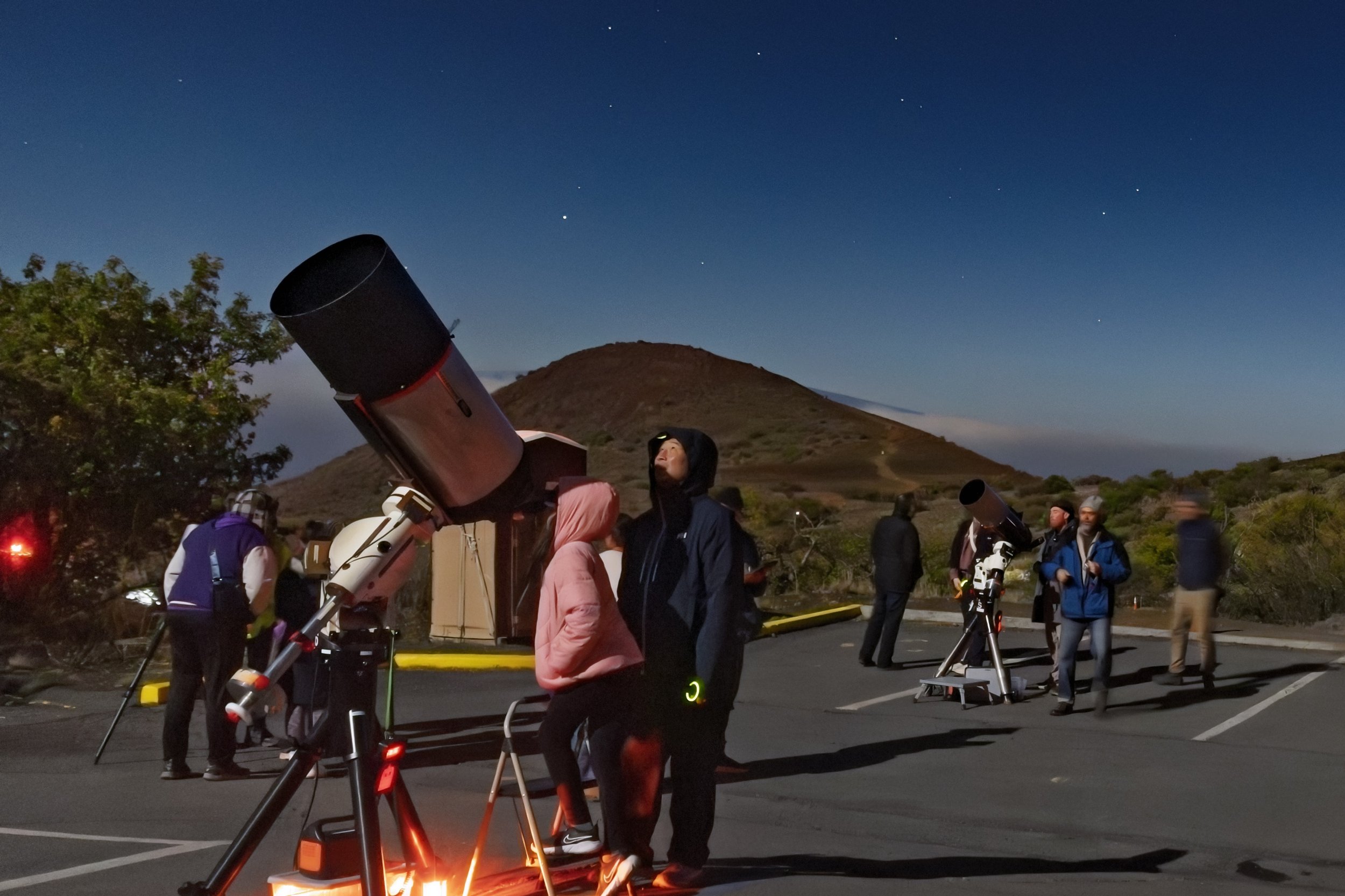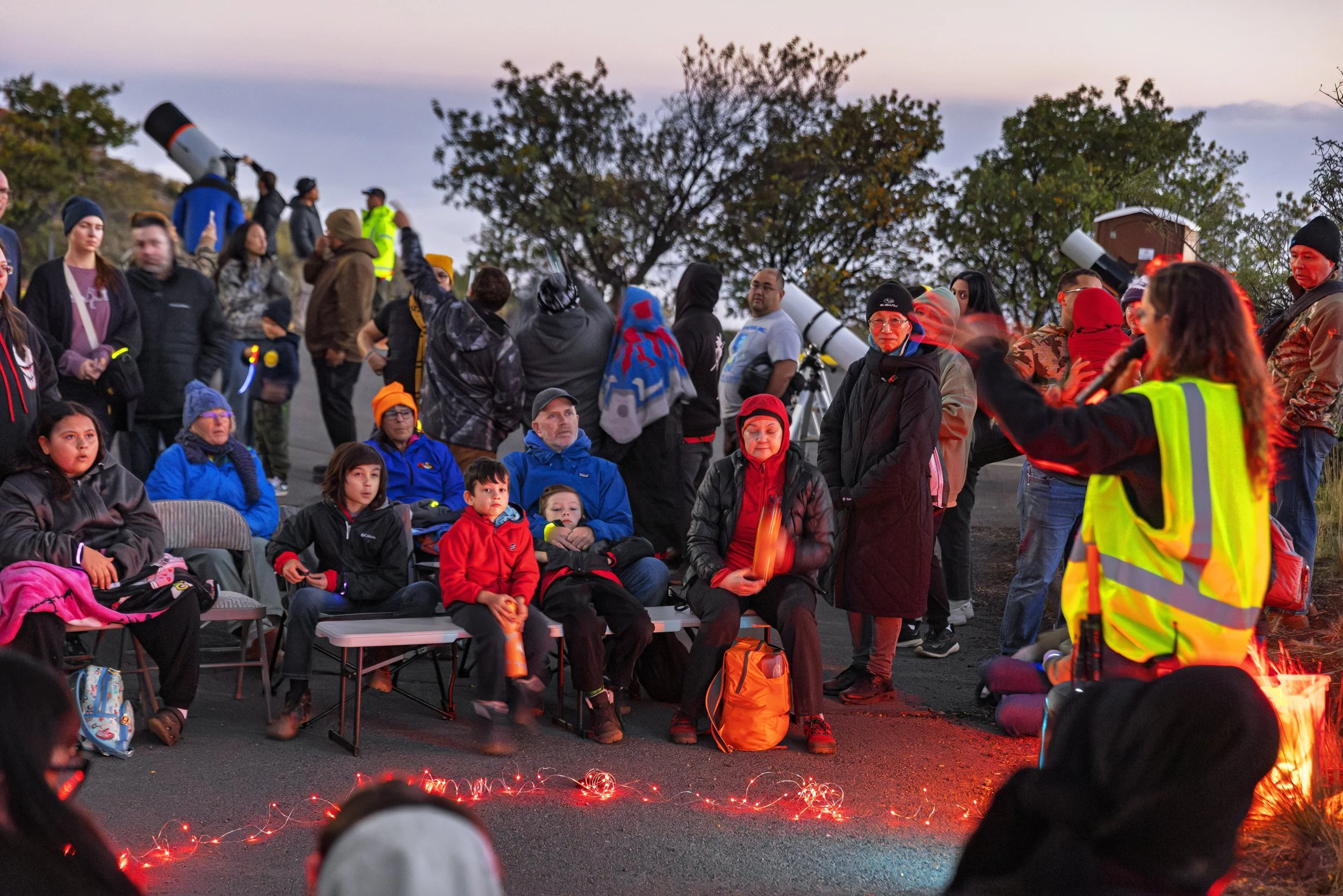 Spring Journey Week kicked off on January 31 with an exclusive stargazing event co-hosted with the Center for Maunakea Stewardship at Hale Pōhaku for Hilo-Waiākea teachers, students, and families. The evening opened with traditional Hawaiian protocol for entering sacred space led by Leilehua Yuen, Hawaiʻi Culture and Language Resident at Gemini. While the Moon rose over nearby puʻu, attendees peered through telescopes and listened to a variety of star stories told by Yuen and Dr. Jacelle Ramon-Sauberon, Education Liaison at Kitt Peak National Observatory.
