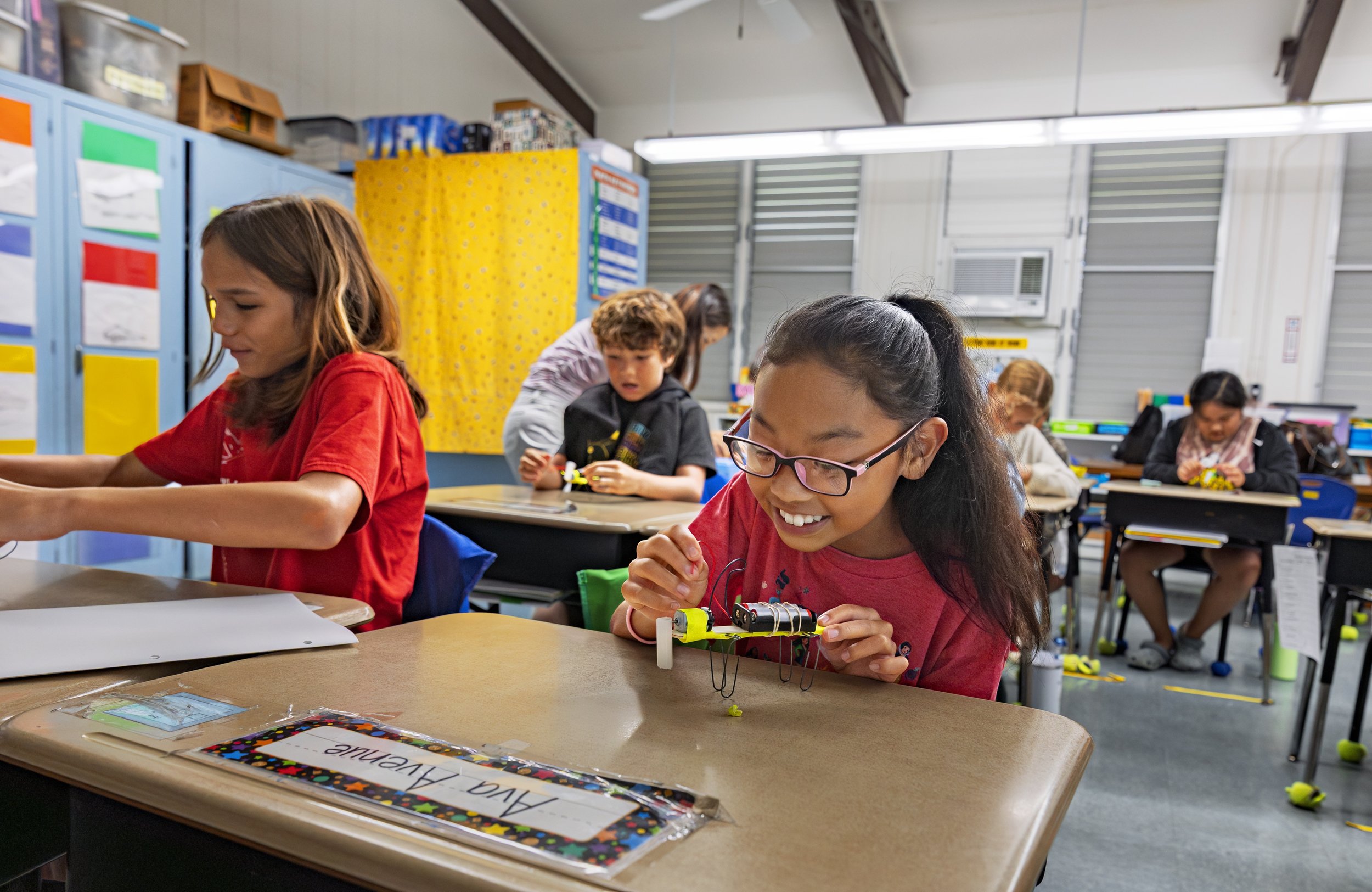 On Tuesday, February 3, Justine Schean, Arizona Education and Engagement Manager at NOIRLab, taught keiki how to build their own little robots with paper clips and batteries at De Silva Elementary. The activity highlighted the extensive amount of engineering and technical skills needed at ground-based observatories but also emphasized the complexity of controlling unmanned rovers on other planets.